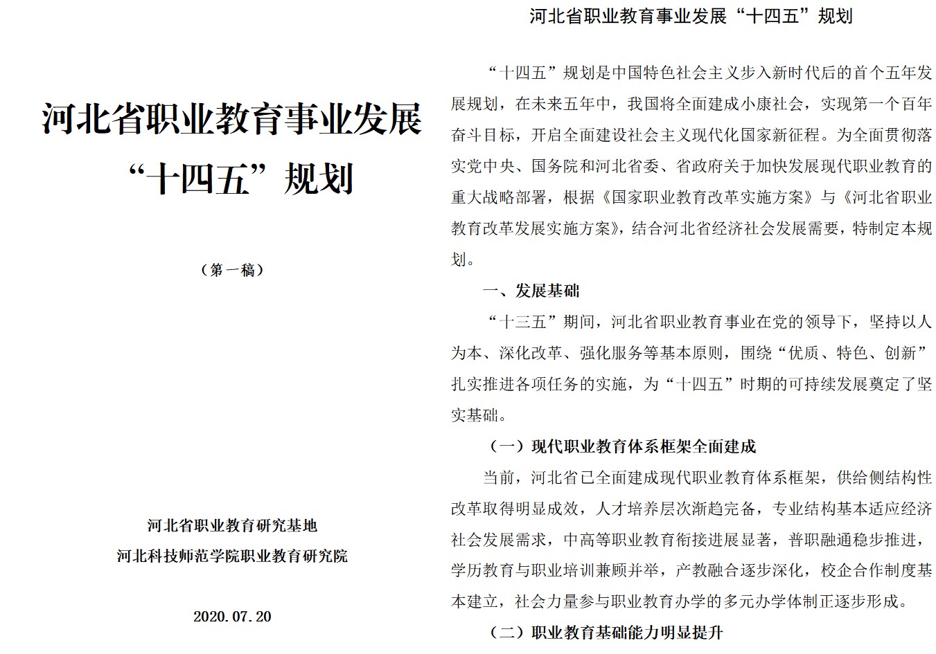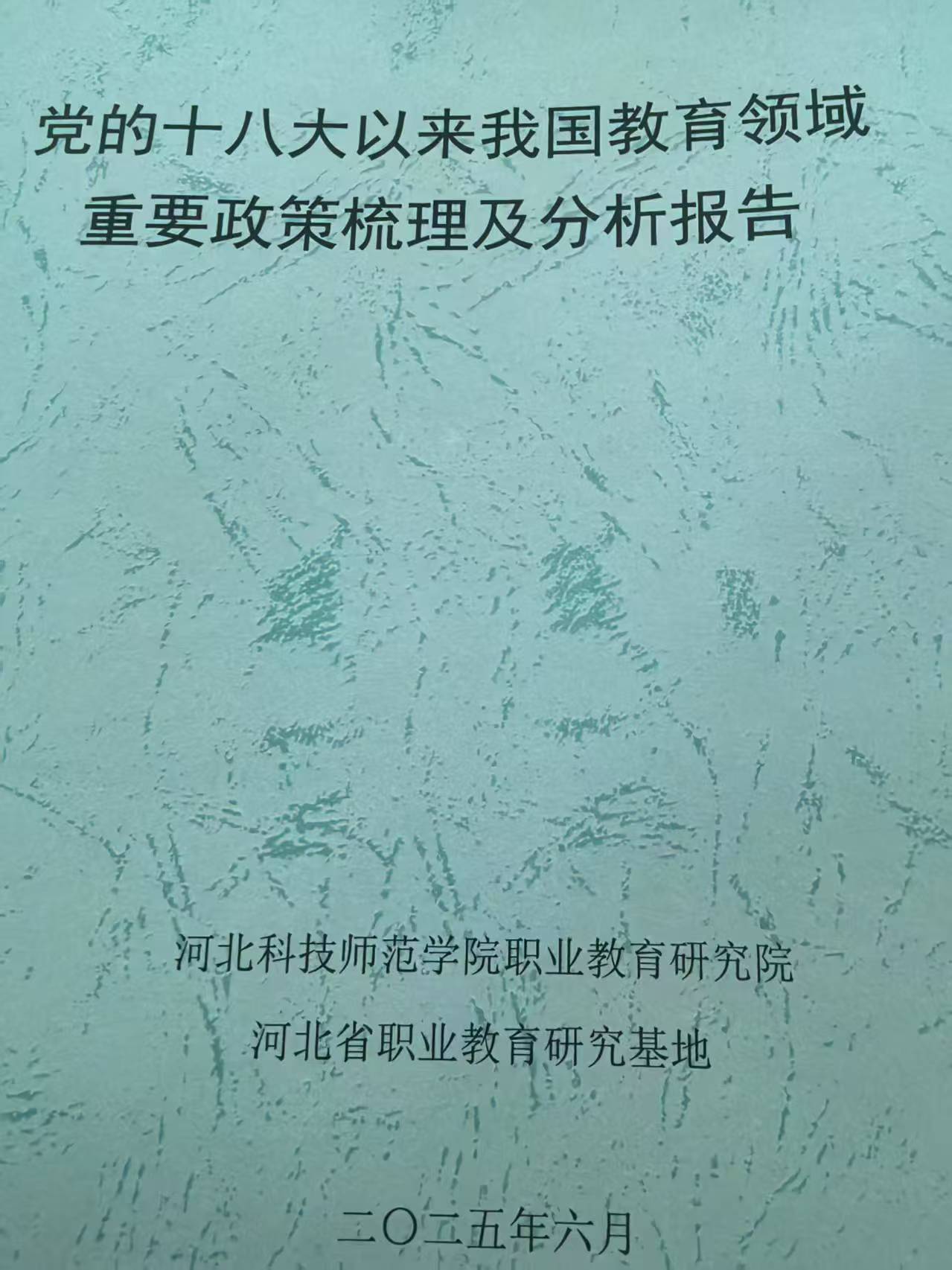 近年来,职业教育研究院确立了服务区域发展、服务政策咨询、服务学校建设的目标导向,开展了系列服务社会工作,主要包括:一是起草了“河北省职业教育‘十四五’规划(建议稿)”,获第三届河北省教育科学研究优秀成果一等奖;二是提交了包括14篇论文的“职业院校教学诊改研究论文集”,主体成果获河北省职业教育教学成果一等奖;三是调研了全省11个地市,对全省职业院校产教融合情况进行了初步的整体描绘,获得时任副厅长肯定性批示;四是完成《关于当前我省“企业用工难、学生就业难”问题的调查报告》等报送河北省教育厅;完成《教师节设立40年职业教育教师队伍建设研究报告》等报送教育部职教发展中心,为政策制定提供参考。五是梳理了十八大以来我国教育政策演进逻辑,为我校应用型大学建设贡献力量。