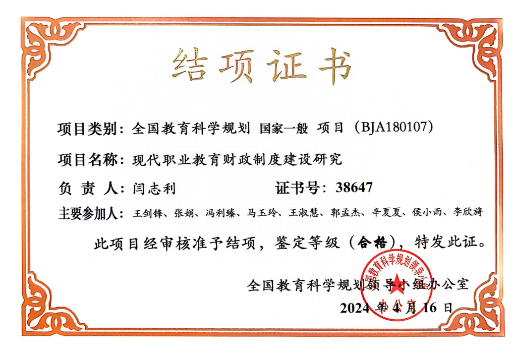 第三届河北省教育科学研究优秀成果奖获奖证书