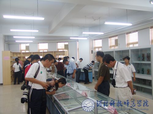 图为刘春延场长一行在我校植物标本馆参观考察