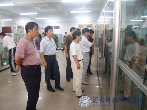 图为刘春延场长一行在我校园艺园林系实验室参观考察