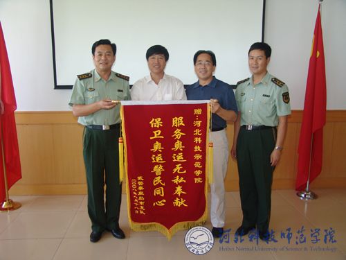 来校慰问的部队官兵分别向我校赠送了“树高校典范,保奥运平安”、“保障奥运硕果累累,严谨治学人才辈出”、“服务奥运无私奉献,保卫奥运警民同心”等锦旗。