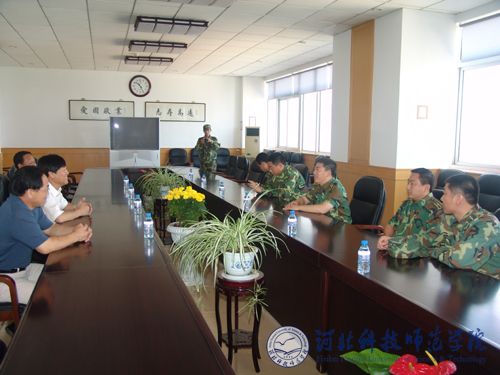 2008年8月19日至20日,执行奥运安保任务的驻秦部队官兵纷纷来我校慰问。学校党委副书记、院长汤生玲,副院长孟令臣,保卫处处长胡志杰与部长官兵进行了亲切友好的座谈。