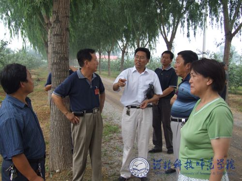 2007年7月23日,我校应集发公司邀请,副院长王同坤教授带领专家组一行6人到我校的科技示范基地——集发农业生态观光园进行考察和技术指导。专家们在集发集团副总经理及生产技术部部长等有关人员的陪同下,认真考察了四年和五年生苹果观光采摘园的生长情况,对存在的问题进行了深入的分析,并在技术方面提出了指导性意见。另外,我校专家组一行还先后考察了在北戴河集发观光采摘园由我校培育的桃新品种“秦红”和番茄新品种“冀东216”两个示范基地。两个新品种在集发采摘园内,表现良好,深受游人的喜爱和基地管理人员的好评。