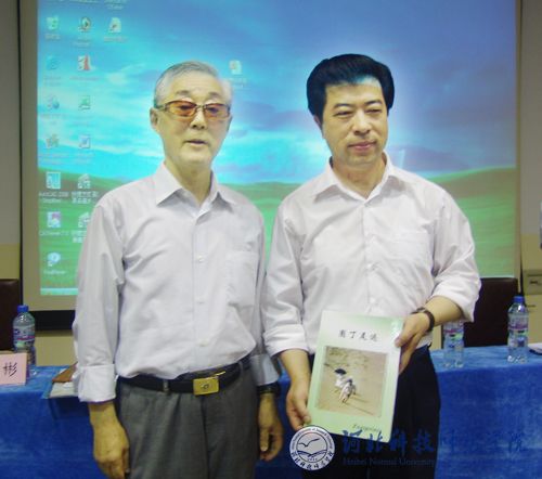 房海副院长向王鸣教授颁发了我校客座教授聘任证书,王鸣教授向我校回赠了他七十年人生历程和人生理念纪实专著《园丁足迹》一书。