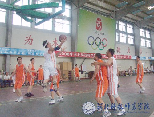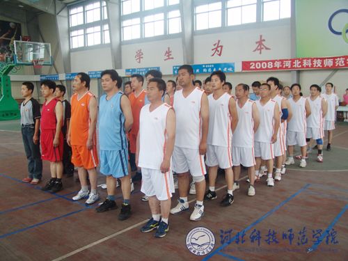 2008年6月14日上午8:00,我校迎奥运第二届“流动杯”教职工男子篮球比赛在昌黎校区体育馆开赛。来自秦皇岛校区、昌黎校区、开发区校区和欧美学院校区的四支代表队共50余名运动员参加了比赛。学院副院长、体育运动委员会主任房海,党委常委、组织部长、工会主席刘泽义和刘卫东、李荣和、高书国、李艳坡、姜亚东、冯瑞银、唐代清、刘朝辉、宋和平、李会增、陈建新、高素玲等学校各单位负责同志出席开幕式并观看了比赛。开幕式仪式由工会副主席李佩忠主持。
