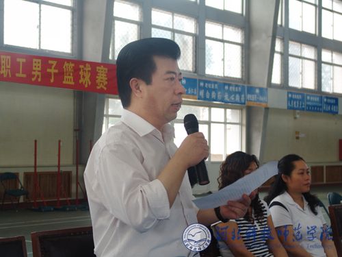 开幕式上,学院副院长、体育运动委员会主任房海同志发表了热情洋溢的讲话。他激励全体参赛运动员在比赛中赛出风格,赛出水平,大力弘扬“更快、更高、更强”的奥运精神,为我校更好更快发展做出积极贡献。党委常委、组织部长、工会主席刘泽义同志致辞后宣布比赛开始。昌黎校区办公室主任刘卫东同志为比赛抛球。