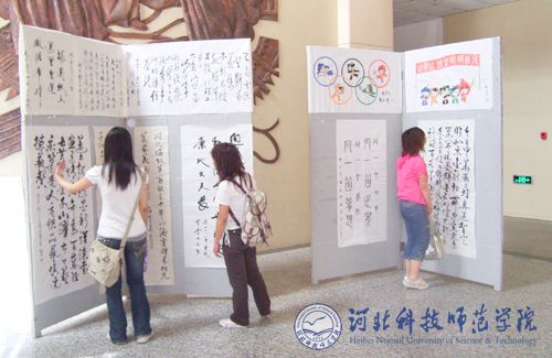 2008年5月28日,我校“迎奥运、讲文明、树新风”主题书画展在秦皇岛校区逸夫楼A区一楼大厅开展。来自全校老干部的76件作品和青年大学生的29件作品参加了展出。活动由离退休人员管理办公室、校团委和学生会联合举办。