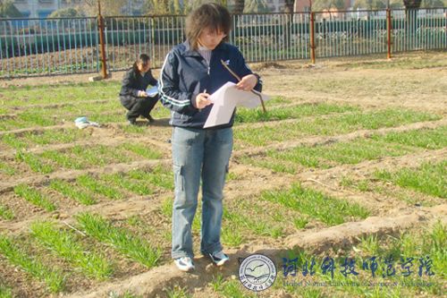 图为我校研究生在分析测试中心试验田进行试验材料生长状况调查