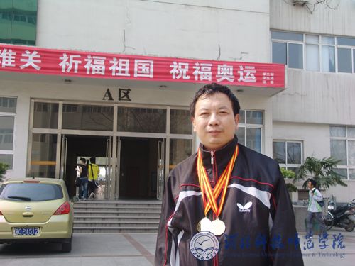 图为我校数理系张立新老师囊获两块金牌载誉归来
