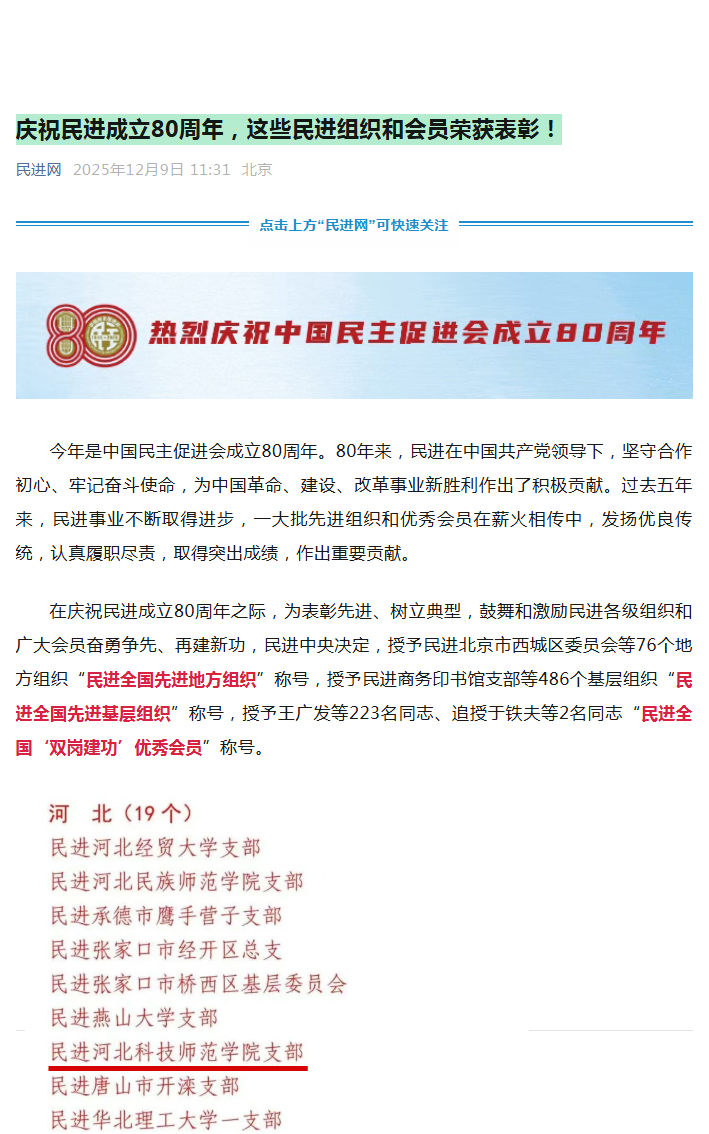 12.102025民进网:庆祝民进成立80周年,这些民进组织和会员荣获表彰!【民进科师支部】